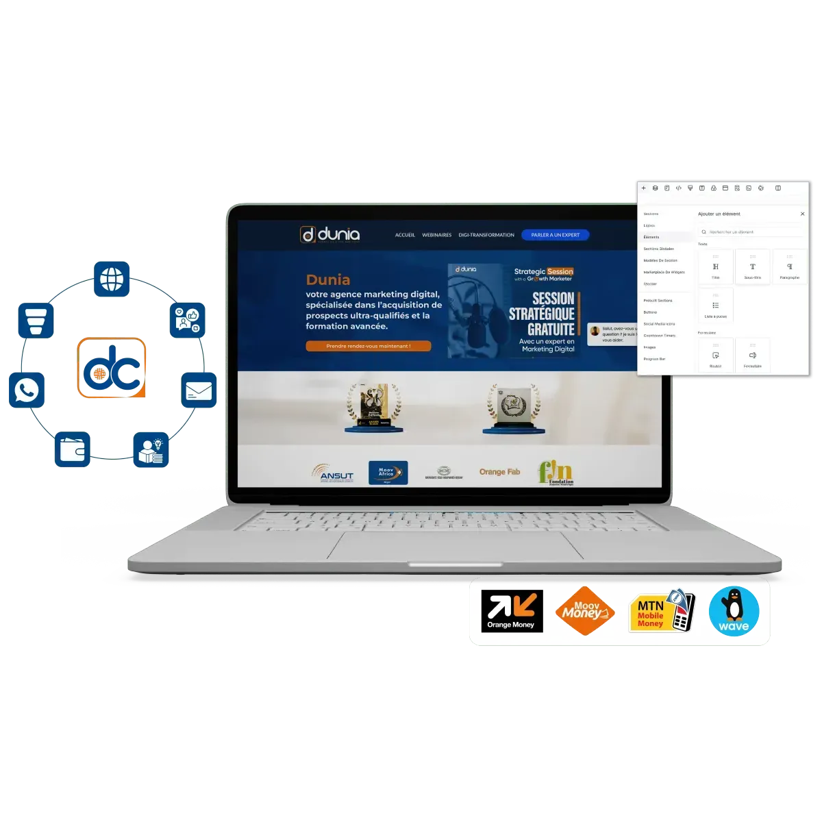 Activez les paiements en ligne en toute simplicité via Mobile Money (Wave, Orange Money, Moov Money, Flooz) et cartes bancaires, pour ne plus jamais perdre une opportunité de vente.