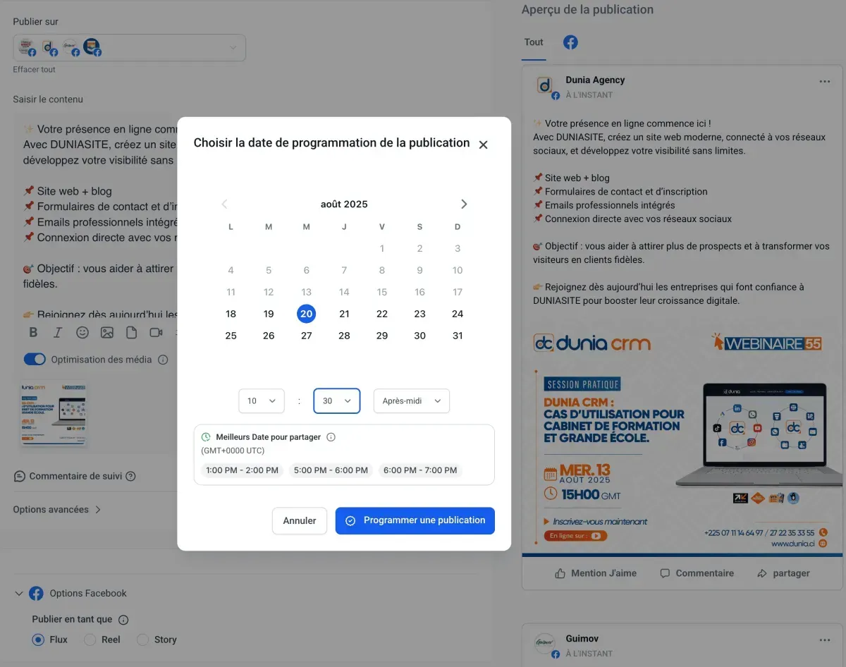 Programmez vos publications à l’avance pour assurer une présence régulière, même quand vous êtes occupé.